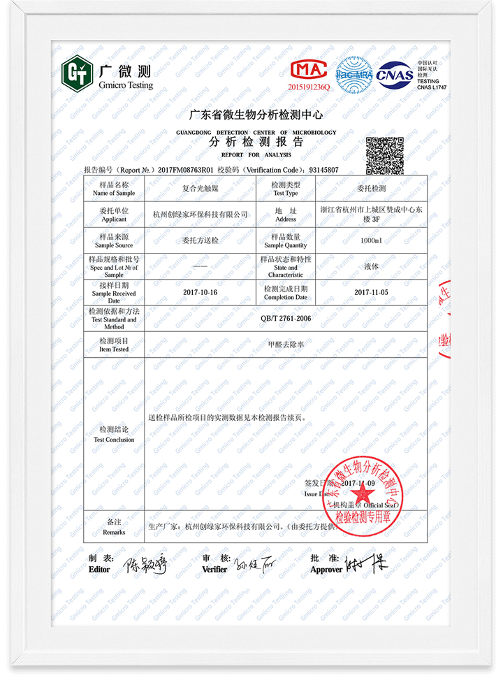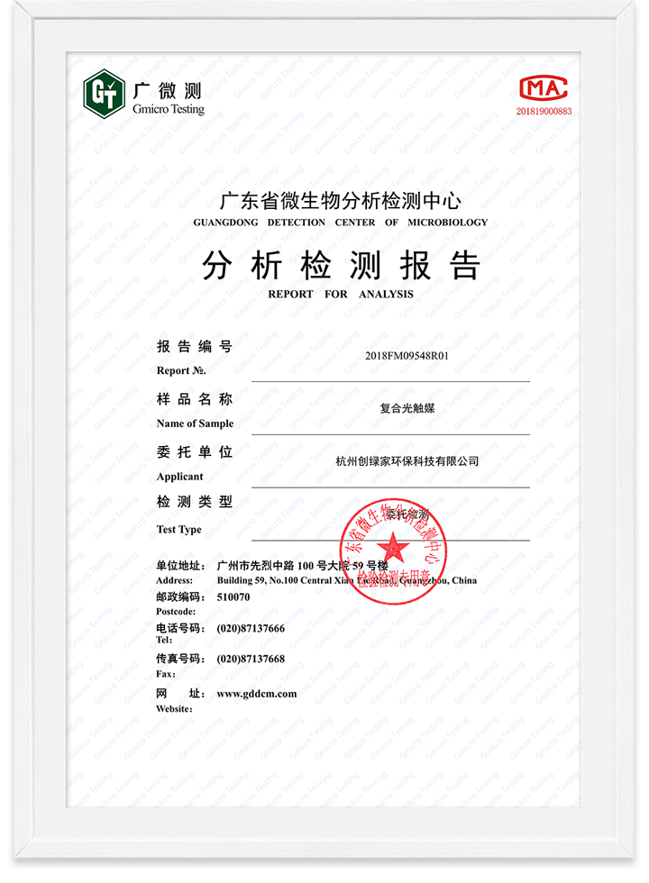 光觸媒無毒檢測報告