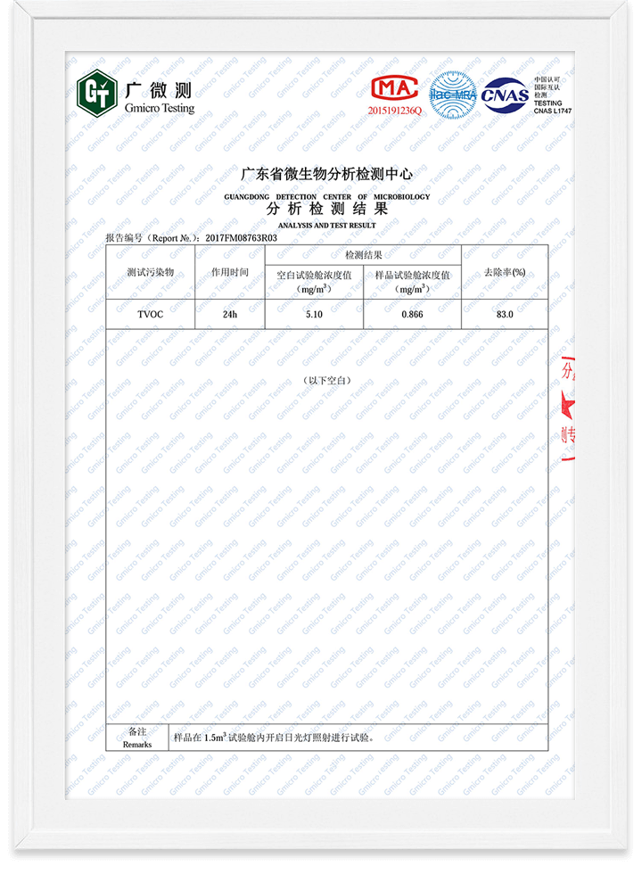 除甲醛魔球無毒檢測報告