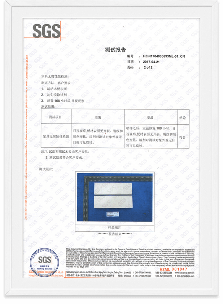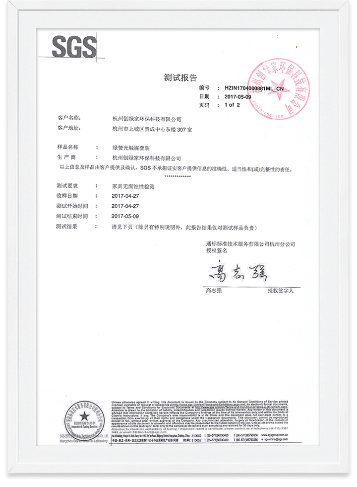 光觸媒家具無腐蝕性檢測報告