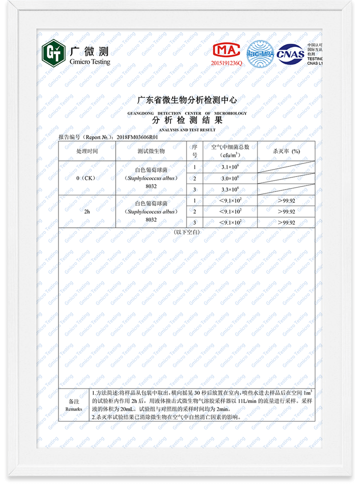 除醛精靈細菌滅殺率檢測報告