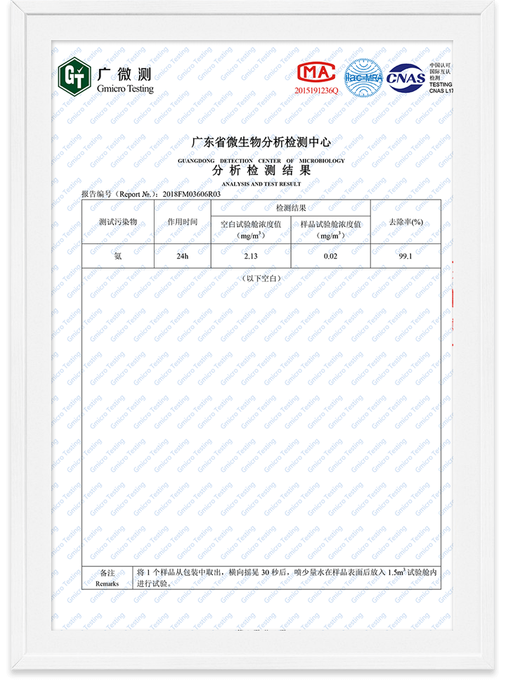 除醛精靈氨去除率檢測報告